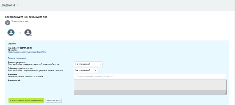 В этом случае выбранный сотрудник должен неукоснительно нажать кнопку «Взял» и перейти к следующему шагу, на котором принимается решение о дальнейшей судьбе данного лида:
