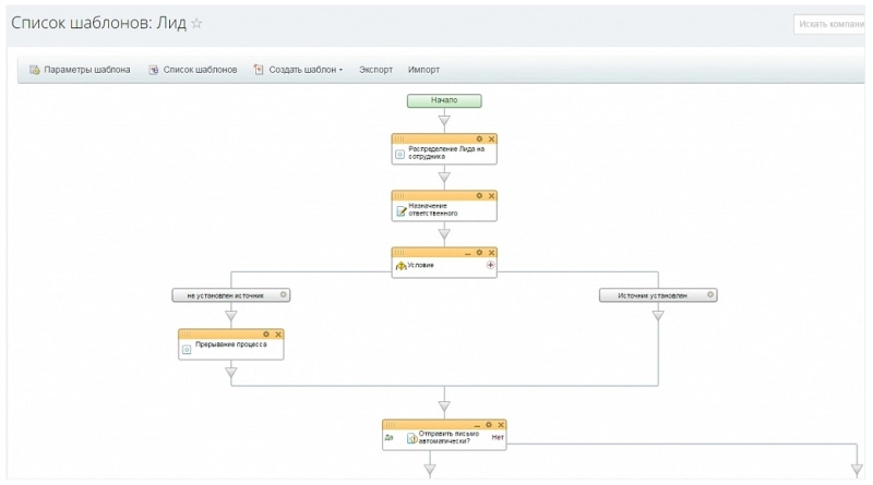 Шаблон бизнес-процесса в Битрикс24 для автоматической рассылки писем разного содержания в зависимости от источника Лида