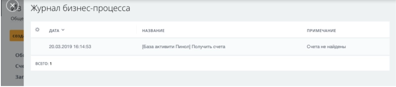 Для проверки работы бизнес-процесса, попытаемся перевести сделку, в которой все счета оплачены в стадию «Проведена оплата». Как видим, система дает переместить сделку на новую стадию и в журнале бизнес-процесса будет создана соответствующая запись: