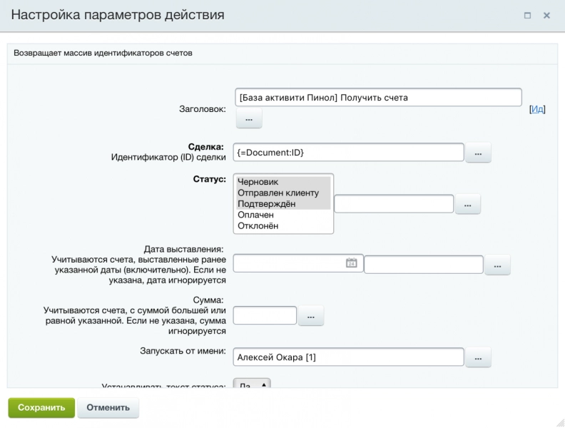 Шаблон бизнес-процесса в Битрикс24 для контроля оплаты по счетам из сделки