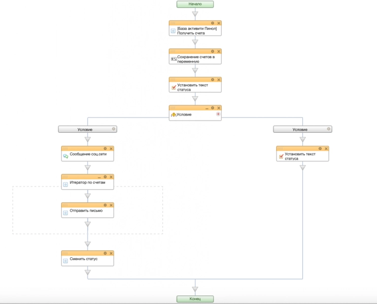 Далее бизнес-процесс возвращает сделку на стадию «Счет».
