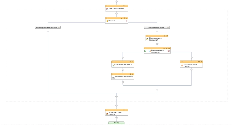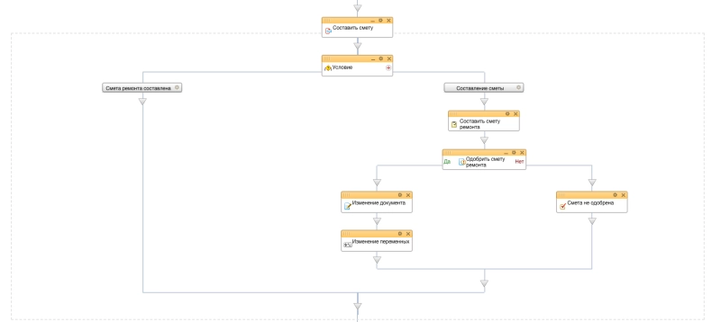 Аналогично далее ставятся задачи по составлению и одобрению сметы ремонта, по выполнению и приемке самого ремонта.