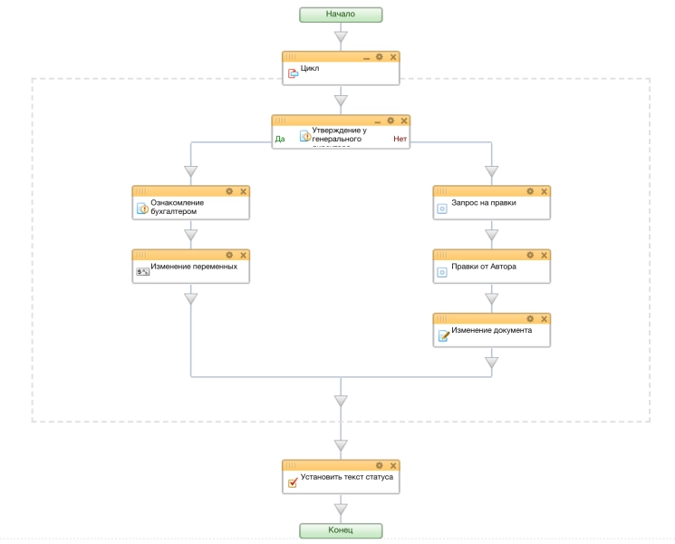 Допустим, теперь всё верно и директор утверждает заявление. Теперь бизнес-процесс отправляет заявление бухгалтеру.