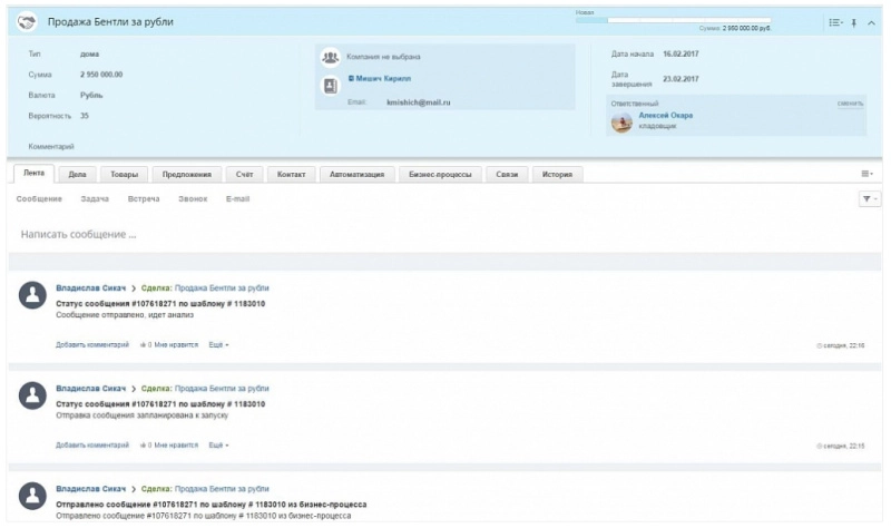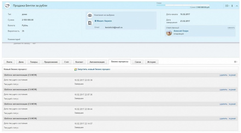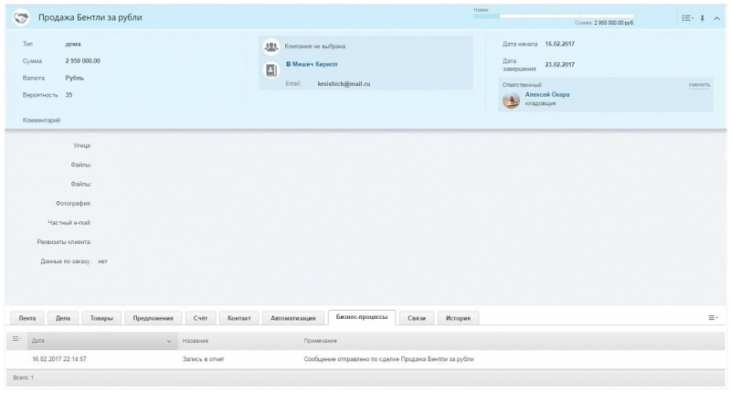 После того, как настроены стадии сделки и сам бизнес-процесс, можно проверить его в работе.