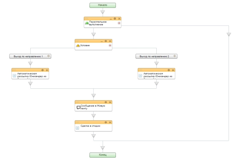 Шаблон бизнес-процесса в Битрикс24 для отправки уведомлений клиентам о новой сделке с помощью разных шаблонов UniSender