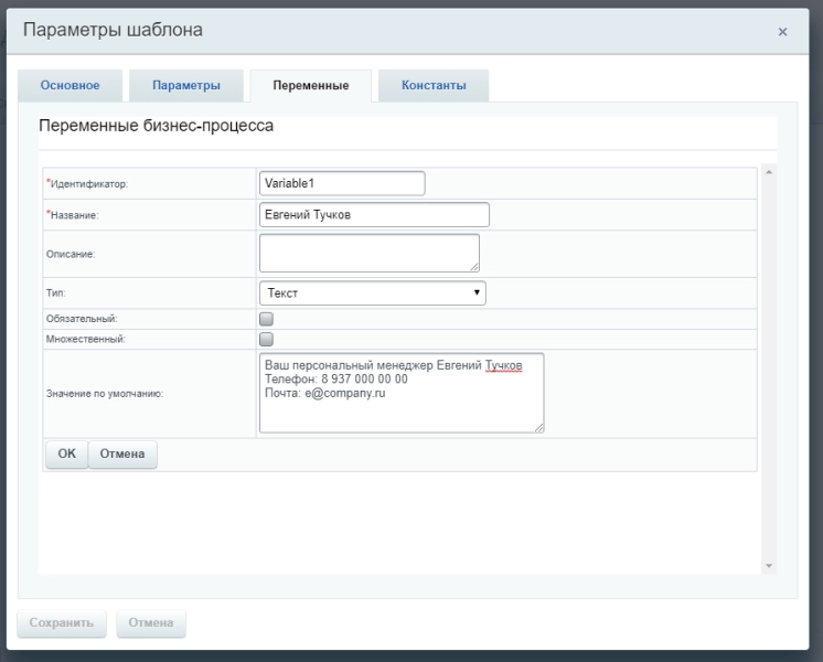 Шаблон бизнес-процесса в Битрикс24 назначения выездного менеджера с отправкой sms-уведомления с его контактными данными клиенту
