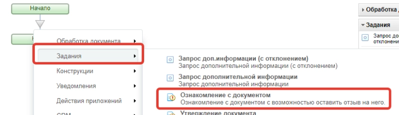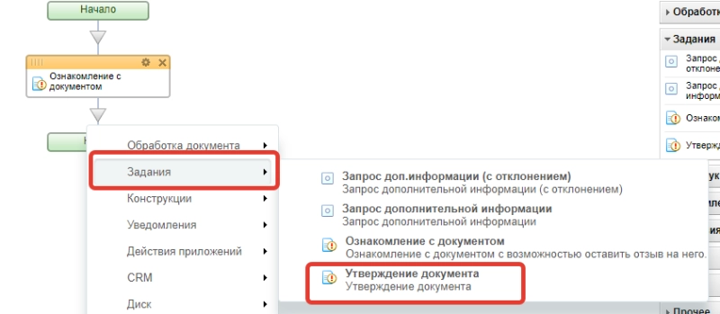 Далее бизнес-процесс даёт задание всем тем пользователям, которых мы указали, Взять в работу.