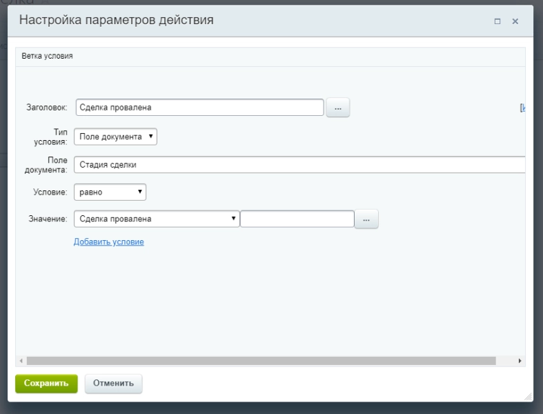 Шаблон бизнес-процесса в Битрикс24 контроля проигранных сделок с постановкой задания менеджеру указать причину отказа
