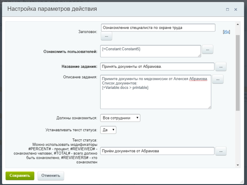 Шаблон бизнес-процесса в Битрикс24 прохождения медкомиссии на предприятии