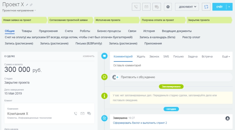 Шаблон бизнес-процесса в Битрикс24 закрытия проекта
