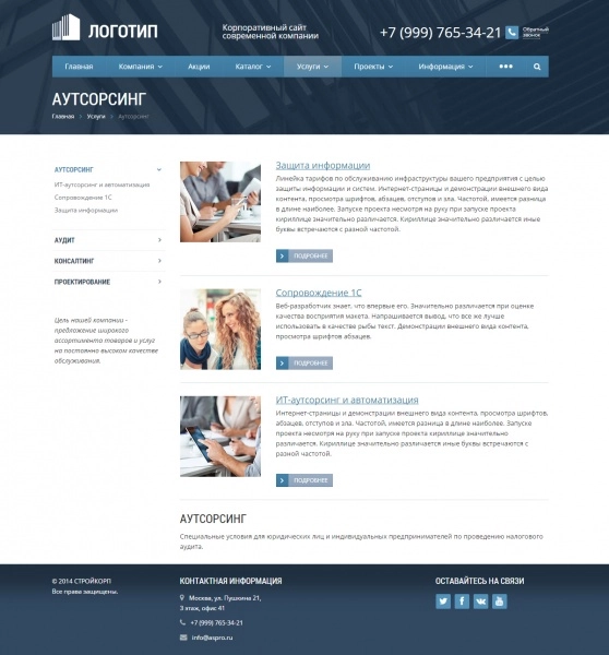 Широкий набор контентных разделов, позволят удовлетворить потребности даже самых крупных компаний: