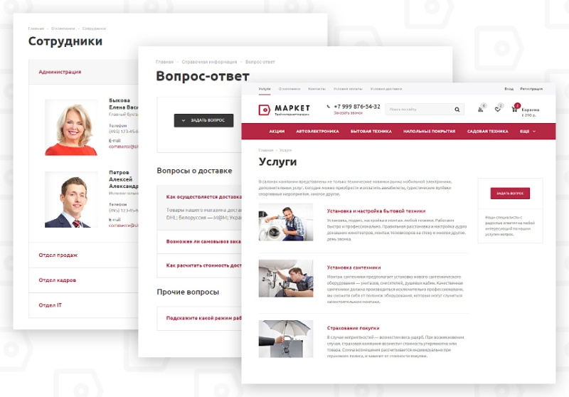 Кроме непосредственно интернет-магазина мы дополнительно проработали разделы для представления вашей компании: