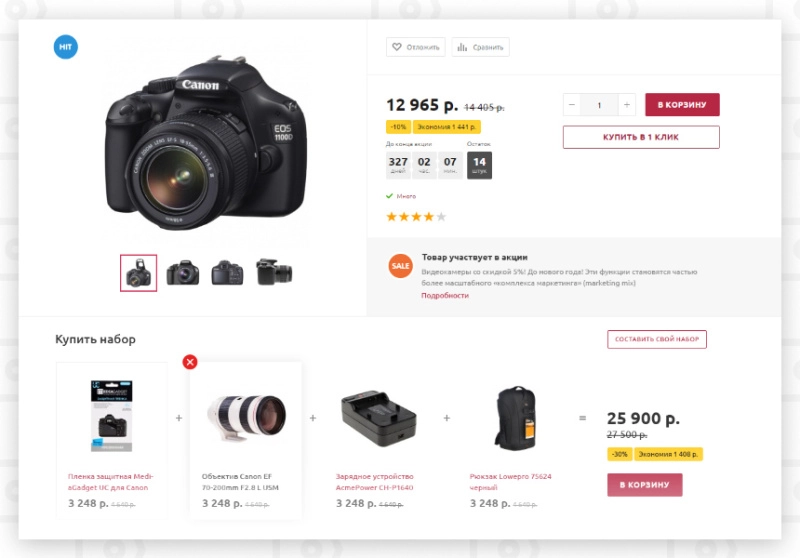 Страница товара спроектирована для обеспечения максимальной конверсии: