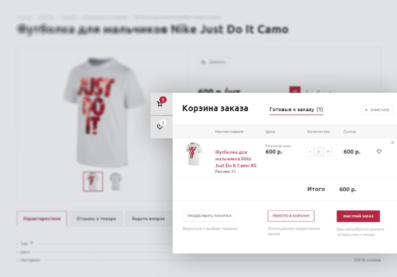 - Быстрое оформленик заказа в 1 клик без регистрации на сайте с указанием только имени и номера телефона.
