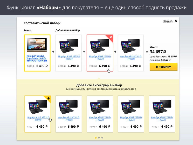 - Комплекты и Наборы + конструктор собственных наборов (без ограничения по количеству!) — и (разные торговые предложения одного и того же товара могут иметь разные наборы)