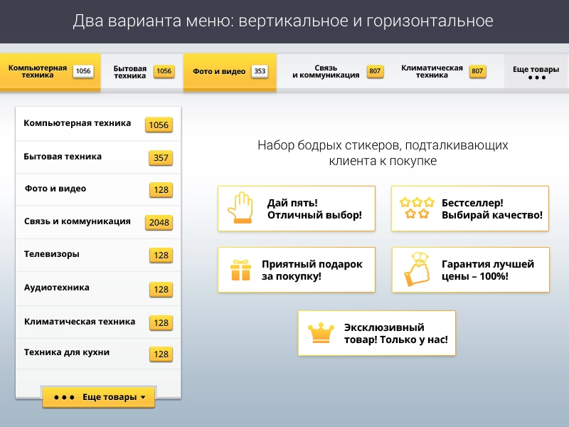 - умные стикеры на товарах (Новинка, Хит продаж, Скидка, Распродажа) и в умном фильтре