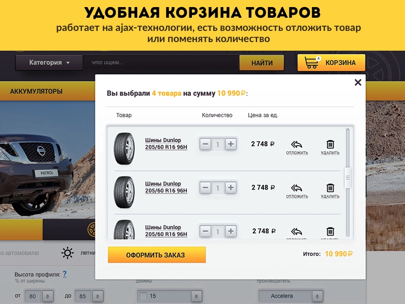 Посмотрите демоверсию интернет-магазина шин и дисков, чтобы оценить все возможности решения.ШинМаркет - магазин шин и дисков — Отлично подходит для компаний занимающихся продажей автомобильных шин, дисков и других авто-аксессуаров!