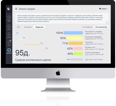 Найти и устранить проблему теперь легко. Стройте воронку продаж в любых разрезах. По количеству сделок или в деньгах, по всему отделу или по отдельным менеджерам, по любым признакам, которые вы сами выберите через теги.