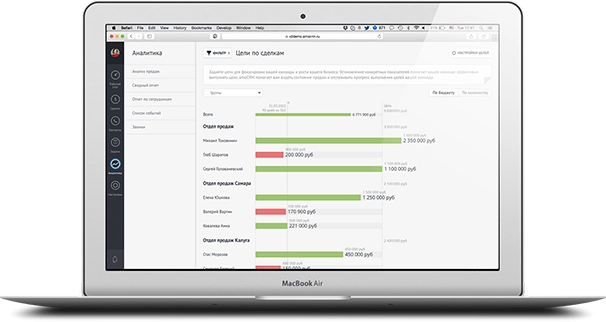 - KPI и план продаж для менеджеров - устанавливайте цели каждому сотруднику и отделам и следите за их достижениями