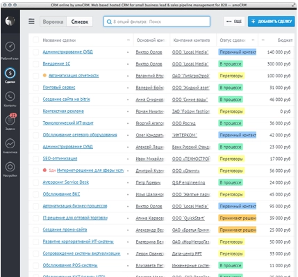 Сделки и контакты - Ведение базы клиентов и управление продажами в amoCRM.