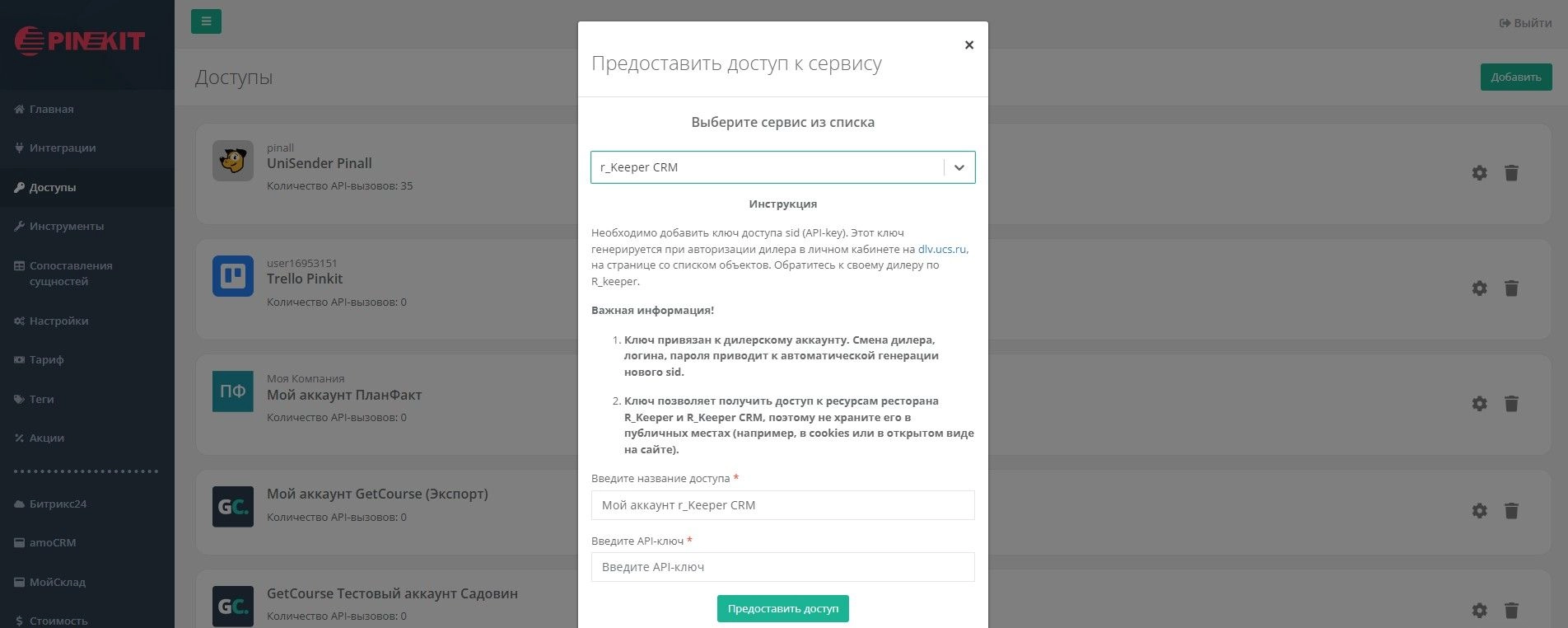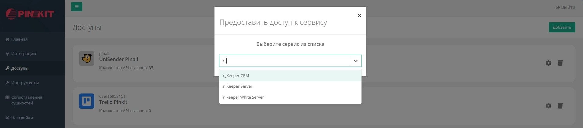 В разделе "Доступы" добавили 2 новых вида авторизации по r_Keeper: r_Keeper Server и r_Keeper CRM.
