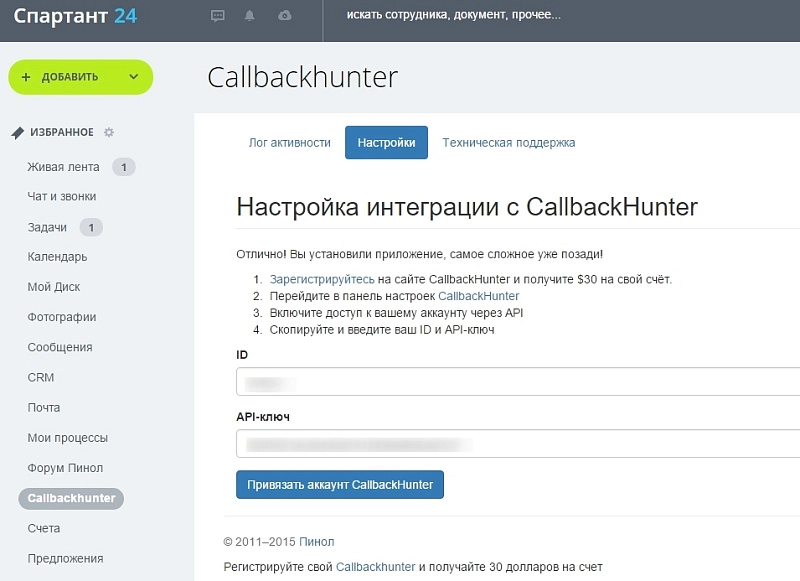Вопросы по работе приложения можно задать на форуме по Маркетплейс-решениям Битрикс24. Сервис техподдержки развернули специально для решения проблем в работе связки Битрикс24 и Callbackhunter.