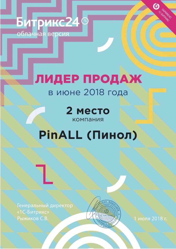 В июне 2018 компания Пинол заняла 2 место в рейтинге «Лидер продаж» облачной версии Битрикс24.