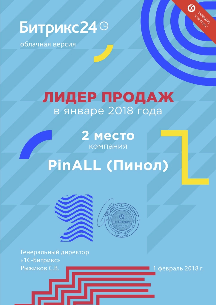 Пинол снова стала лидером продаж облачной версии Битрикс24 по результатам января 2018 года.