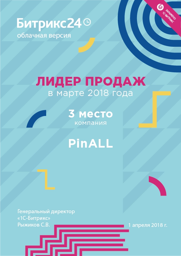 В марте 2018 компания Пинол удержала передовые позиции в рейтинге «Лидер продаж» облачной версии Битрикс24.
