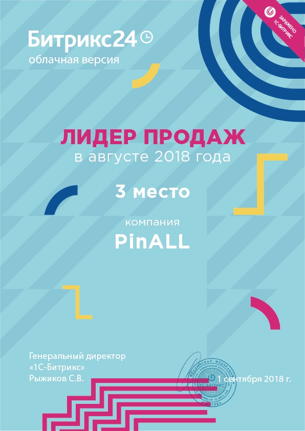 В августе 2018 компания Пинол заняла 3 место в рейтинге «Лидер продаж» облачной версии Битрикс24.