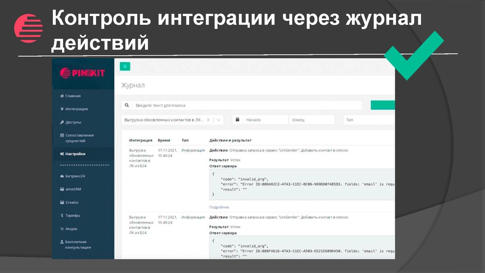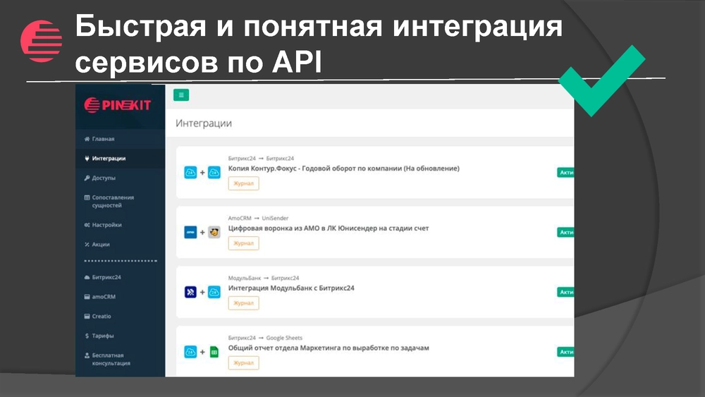 платформу для автоматизации бизнеса и обмена данными между веб-сервисами Пинкит.