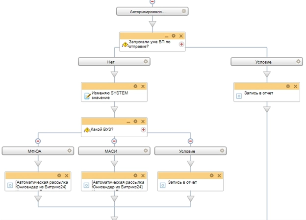 - Если в карточке сделки будет указан источник МФЮА, письмо направляется с этой ветки.