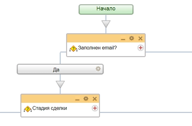 По условию бизнес-процесса, на начальном этапе, проверяется заполнено ли поле email-адреса