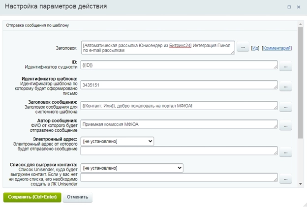 2 Этап: Запуск и настройка бизнес-процессов при помощи нашего активити автоматическая рассылка Юнисендер из Битрикс24.(подробнее об активити)