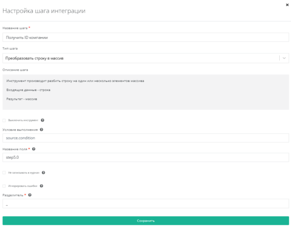 Преобразуем строку в массив в поле step5.0. Укажем разделитель "_".