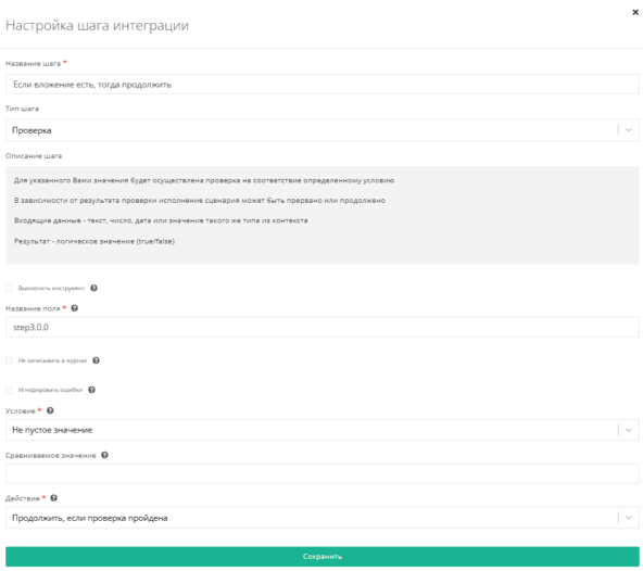 - Если вложение есть, тогда продолжить