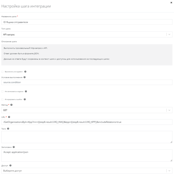 URL = /GetOrganizationsByInnKpp?inn={{step8.result.0.RQ_INN}}&kpp={{step8.result.0.RQ_KPP}}&includeRelations=true.