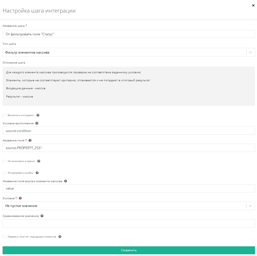 - Отфильтровать поле "Статус"