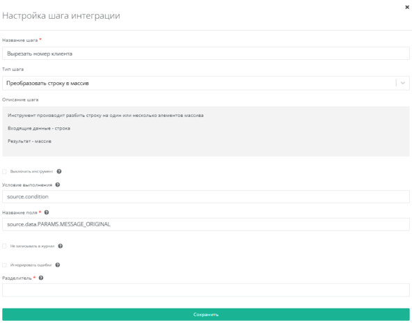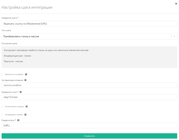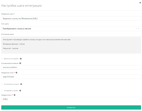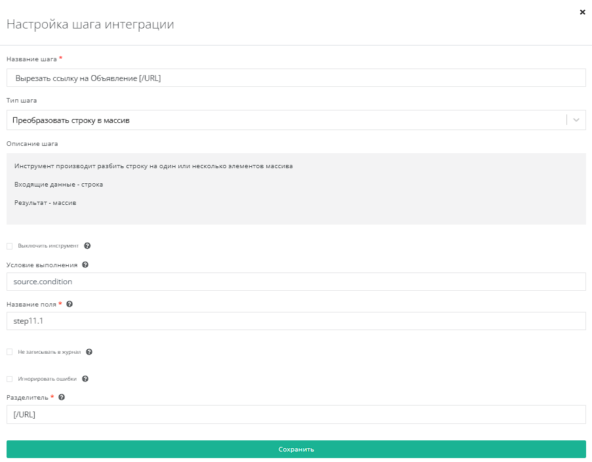 Используем инструмент Преобразовать строку в массив в поле step11.1.