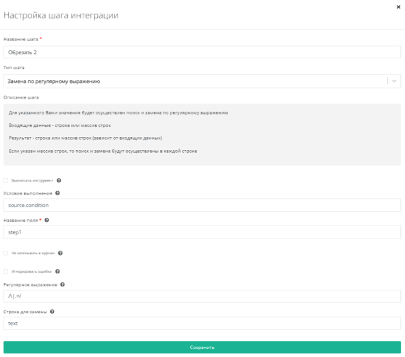 Используем также замену по регулярному выражению в поле step1. Регулярное выражение: /\|.+/.
