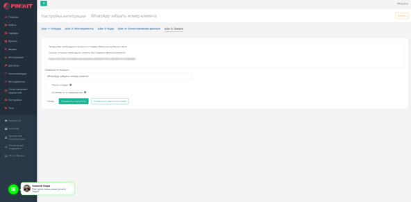 2. Интеграция WhatsApp - забрать номер клиента