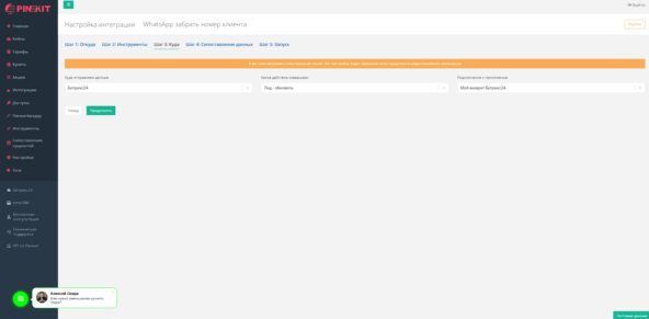 - Подключаем PinkitBot к открытой линии Wazzup — бот обрабатывает входящие обращения с сайта через WhatsApp без участия сотрудников.