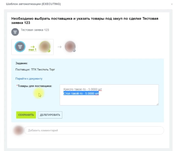 Таким образом, настроенный бизнес-процесс при помощи нашего активити «Получение списка товаров на лидах и сделках» помогает менеджерам формировать заказы в производство, как внутри компании, так и у поставщиков компании.