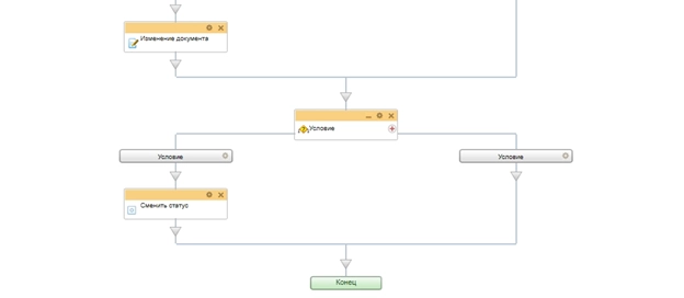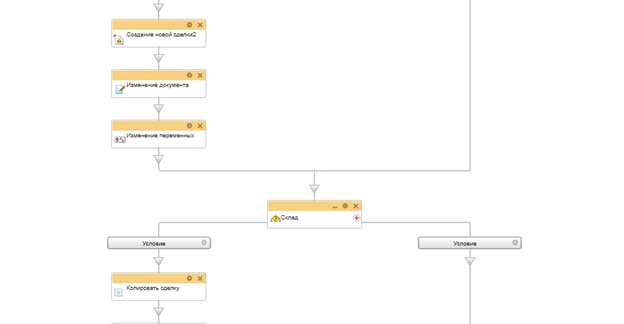 После распределения товаров, сделки уходят каждая на свою воронку и бизнес-процесс завершается.