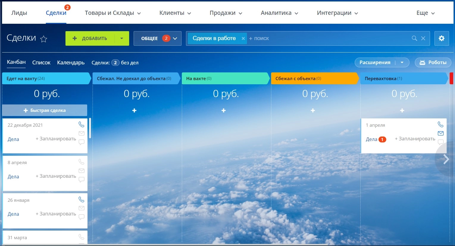 На этапе “Едет на вахту” организованы ежедневные уведомления менеджера для контроля клиента.