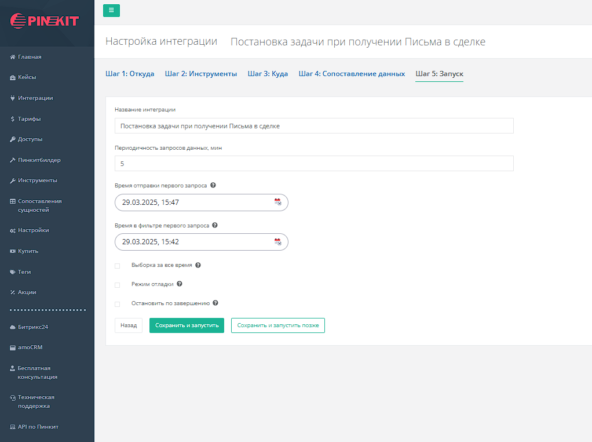 1.1. Как только поступает письмо, Пинкит получает адрес отправителя и находит связанную сделку, сопоставляя почту из письма с данными в сделке.