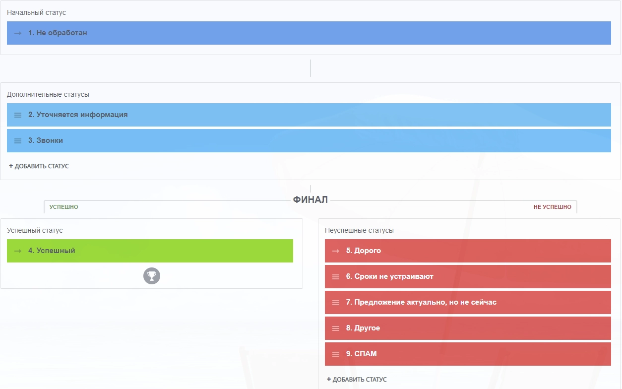 Мы добавили такие стадии Лидов в CRM Битрикс24 которые позволят максимально быстро обработать лид и сконвертировать его в сделку: