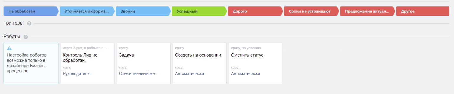 Под каждую стадию в Лидах настроили свой Бизнес-процесс или Робота