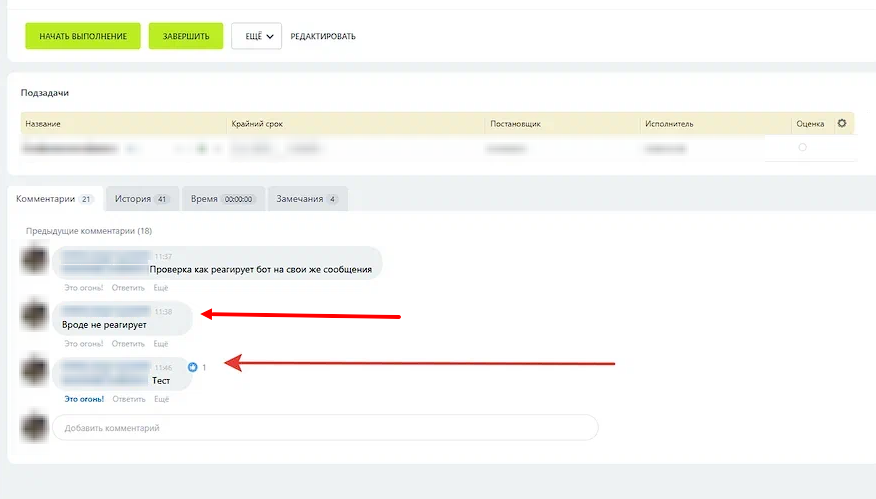 - Абсолютная привязка к задаче. Каждое сообщение отправляется строго к нужной задаче — никакой путаницы и лишних уточнений.
