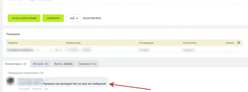 Его сообщение автоматически превращается в комментарий внутри задачи Битрикс24.